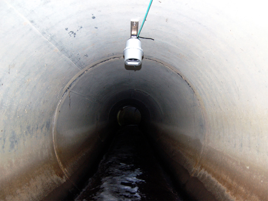 Due to its compact design and flexible mounting device, the sensor is very easy to install, for example under bridges or extensions, on ceilings of sewers or in manholes. The non-contact measuring technology has the decisive advantage that the sensor can be mounted above the water level. Thus, the SQ-R+ can be easily installed, is readily accessible and cannot be clogged or blocked by entrained solids, which is often the case with submerged sensors.